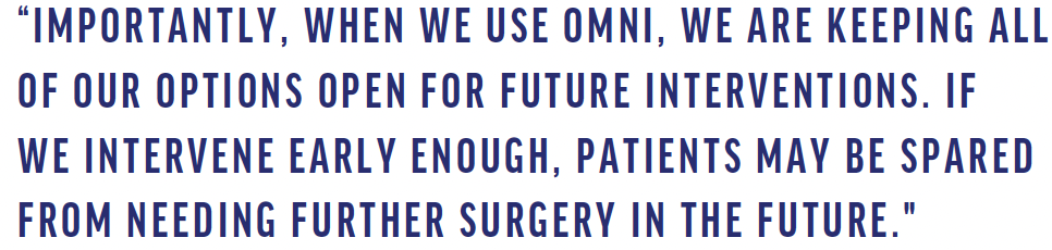 Importantly, when we use OMNI, we are keeping all of our options open for future interventions. If we intervene early enough, patients may be spared from needing further surgery in the future, but when patients do require additional surgery further down the line, many other possible options remain available to us.