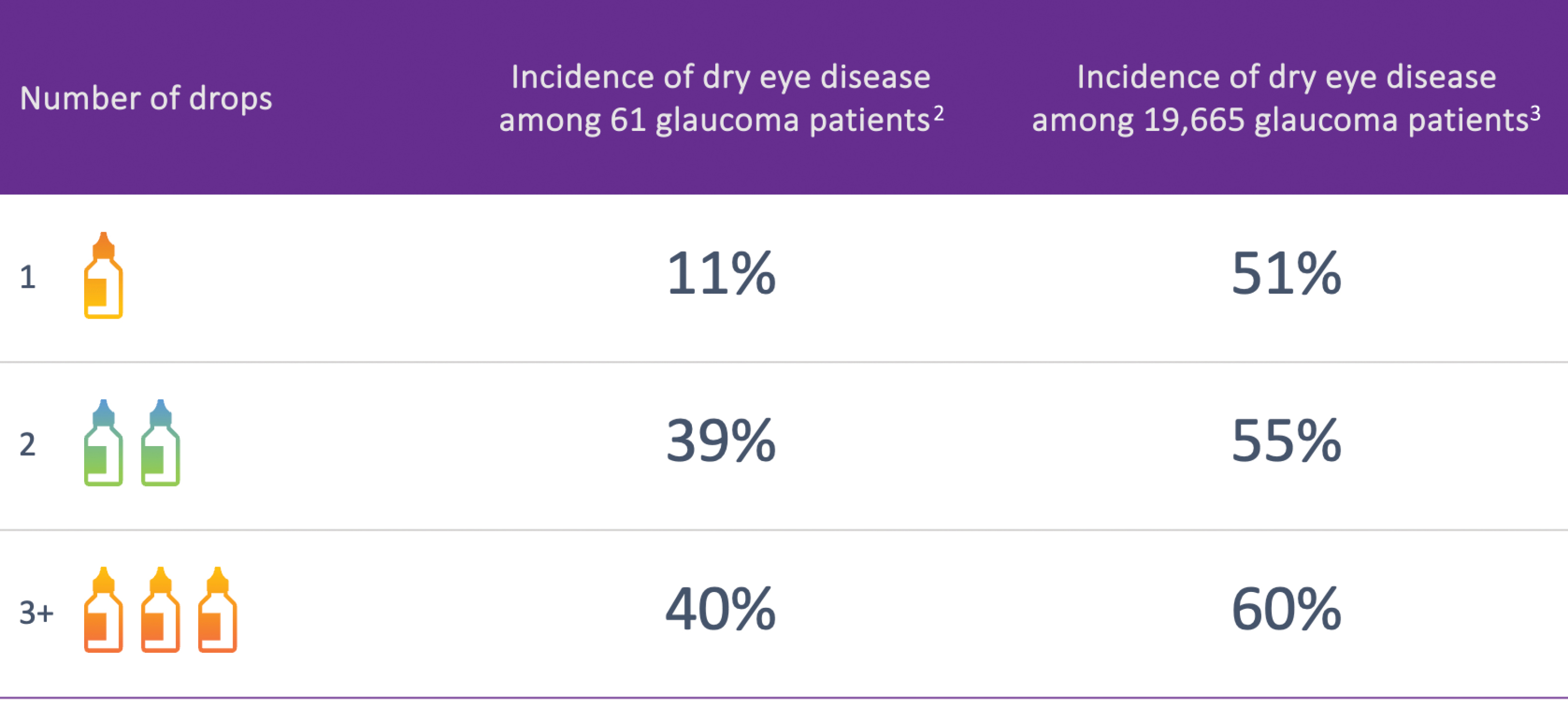 Figure 1. Studies show a direct correlation between the number of glaucoma medications used and the incidence and severity of dry eye