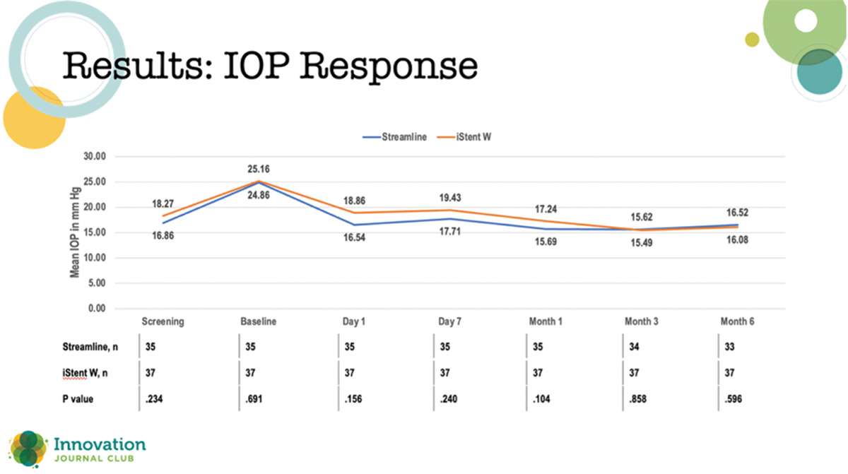 Overall, these interim findings demonstrated comparable IOP and medication reduction between STREAMLINE canaloplasty and iStent inject W implantation when combined with phacoemulsification.