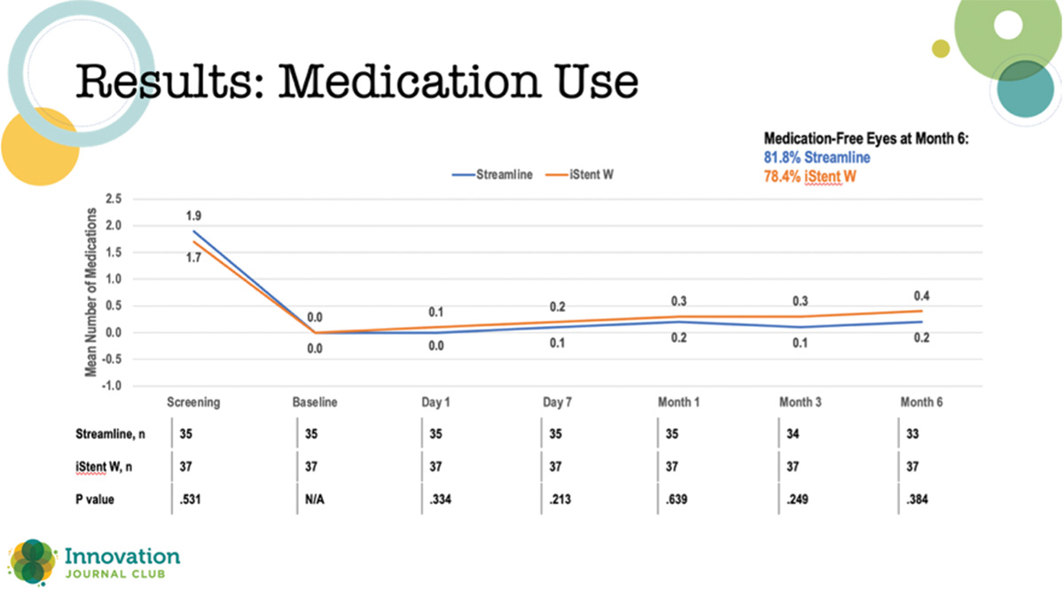 Figure 2. Result data comparing topical medication use between STREAMLINE and iStent patients at 6 months.