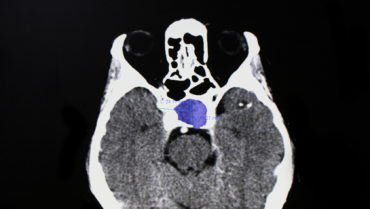 MRI with and without contrast of the brain and/or orbits with attention to the sella is the recommended medium for diagnosis (Figure 2). A patient with a confirmed pituitary macroadenoma should be referred to both neurosurgery and endocrinology. Asymptomatic patients with incidental macroadenomas should receive continued ophthalmologic surveillance because any new visual symptoms strongly indicate a need for surgical intervention. Although there are no established guidelines for the length of ophthalmologic follow-up, lesion size and a progression of visual field defects should inform decisions regarding timeline.